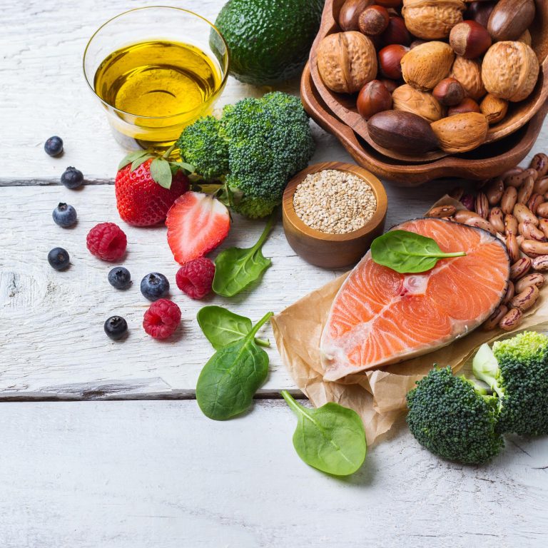 • Antioxidative Vitamine und Pflanzenpolyphenole in Form von viel frischem (und buntem!) Obst und Gemüse.